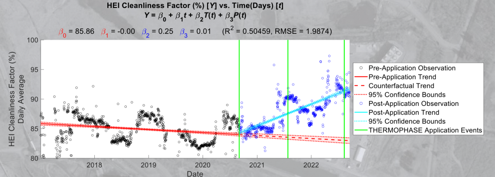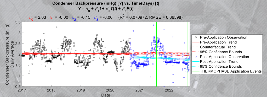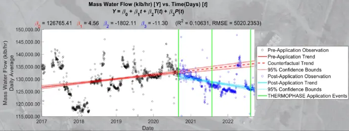 An example of the success of THERMOPHASE™ includes data presented in conjunction with the Department of Energy (DOE) / National Energy Technology Laboratory (NETL). This data was gathered in research of THERMOPHASE™ being applied to membrane filters, specifically. The analysis is directly from plant historical (DCS) and includes five years of operation prior to THERMOPHASE™, and two years of operation with THERMOPHASE™.